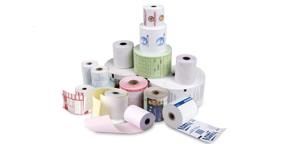 3000 unidades de facturas en rollo de papel químico impresas en alta calidad disponibles en varios tamaños.